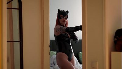 Step Mom in Catwoman Suit Tricks Step Son into Hot Sharebed Sex