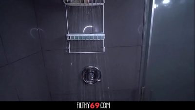 Stepbro barges in on showering Latina MILF stepsis and rails her