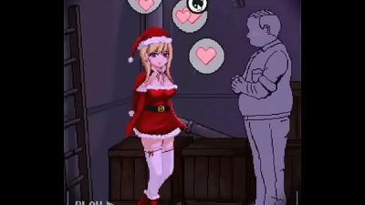 Hot blonde in santa claus vest having sex with a man in hentai game